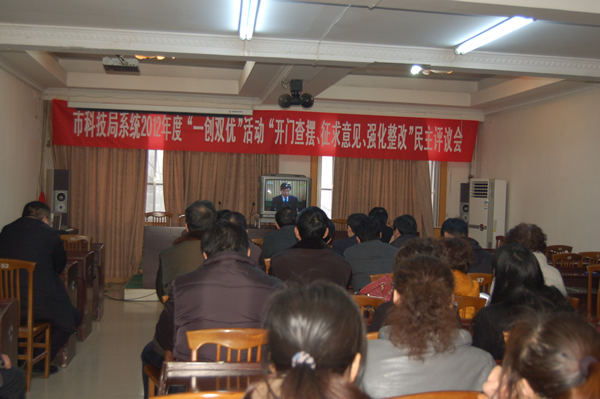 2 月25日 上午9点,市科技局机关全体、局属各单位干部职工在京开大道科技楼四楼会议室集中收看了全市2012年度总结表彰大会实况。