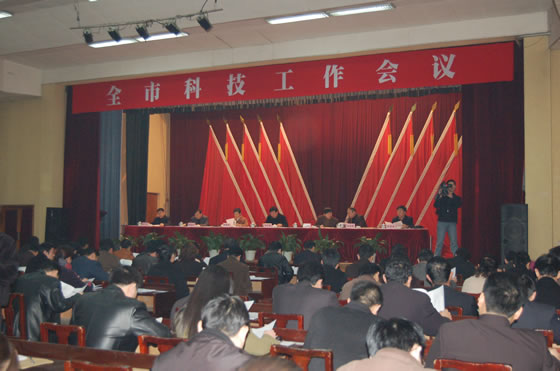 320,全市科技工作会议在濮阳宾馆召开。副市长徐兰峰、市科技局局长李趁英等出席会议。会议由市政府副秘书长陈景涛主持。市科技局副局长解朝聘传达了全省科技工作会议精神市科技局局长李趁英做工作报告。市人事局副局长田自岭宣读了《濮阳市人民政府关于表彰2006年濮阳市科技进步奖的决定》和《濮阳市人事局、濮阳市科技局关于表彰2006年度科技工作先进单位和先进个人的决定》。会议向2006年濮阳市科技进步奖获得者和2006年度科技工作先进单位和先进个人颁发了奖牌。副市长徐兰峰作了重要讲话。