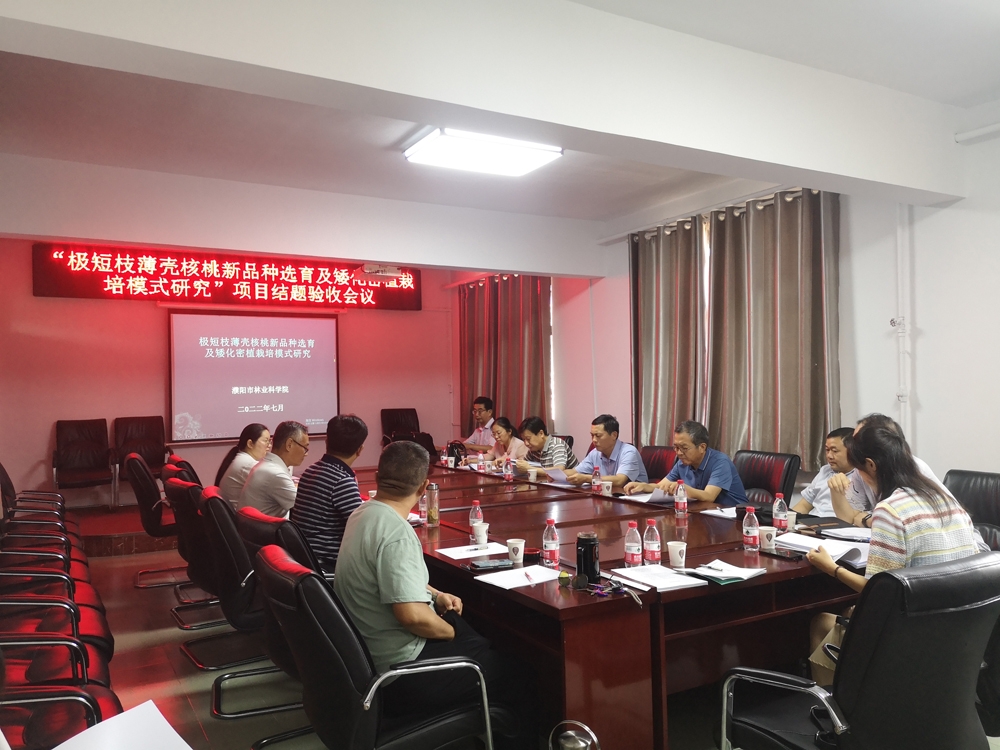 7月8日,濮阳市科技局组织有关专家,对濮阳市林业科学院承担的2019年市级重大科技专项“极短枝薄壳核桃新品种选育及矮化密植栽培模式研究”进行了验收。