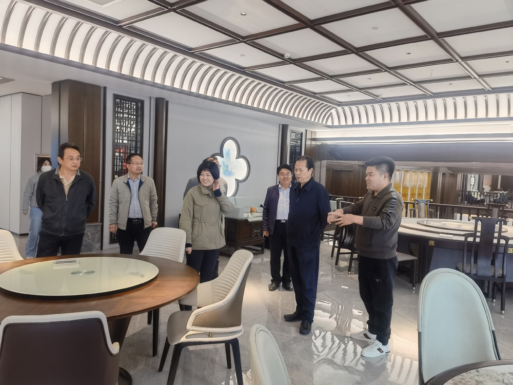 鑫福源家具有限公司市科技局党组书记雷灯照一行先后到家具体验中心、生产车间、研发车间进行了实地查看,详细咨询了解企业的研发投入、工程技术研究中心建设、产品创新情况以及产品销售、标准化车间的建设、高新技术企业和专精特新企业培育情况。并针对企业科技研发、产品创新等方面提出了建设性意见建议。