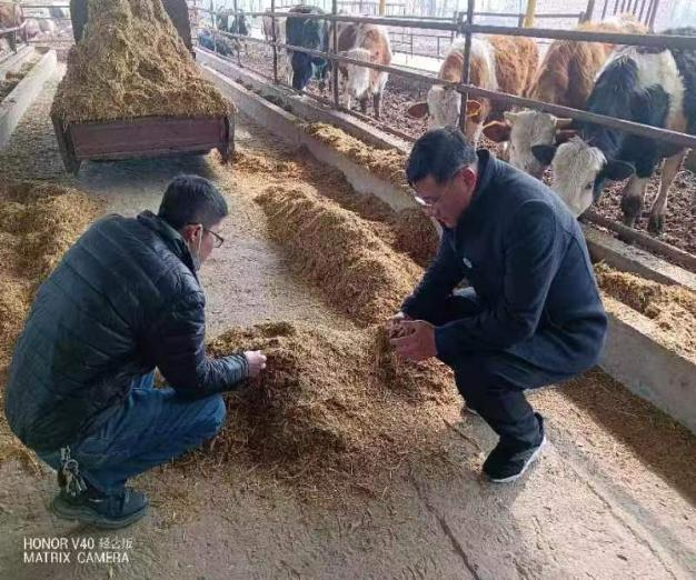 特派员指出,春季是肉牛发育生长最快速的时期,在肉牛的饲养上,日粮精粗搭配要合理,粗饲料以青贮饲料及优质干草为主,同时春季要做好牛的体内外驱虫,可用伊维菌素和阿苯达唑两种药物,进行联合驱虫。要做好牛的免疫接种工作,有效防止传染病的发生。定期做好肉牛场地的消毒。当前气温不稳定,寒冷的天气还没有消失,一定要注意牛舍的防寒保暖工作,特别是倒春寒时更要注意保暖工作。特派员叮嘱饲养管理人员做好每日牛群的观察,以便及时发现问题及时处理。