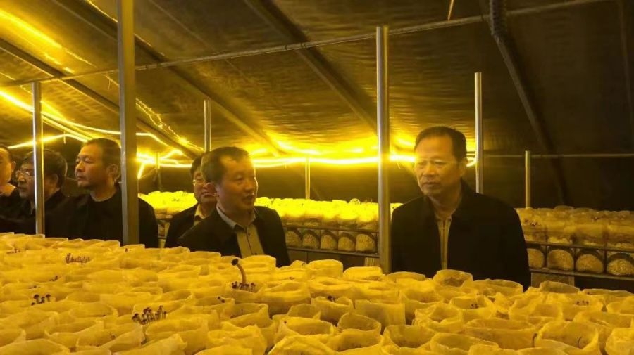 在赵家食用菌基地,雷灯照一行参观了大地密码有限公司、正星集团菌光互补项目、菌包厂等,详细了解了食用菌产业发展等情况,随后实地查看了赵家村容村貌、基础设施建设等。随后在赵家村党群服务中心召开驻村帮扶工作座谈会,听取了村党支部书记关于村情概况、“五星”支部创建等情况汇报,驻村第一书记关于驻村帮扶工作开展情况汇报等。