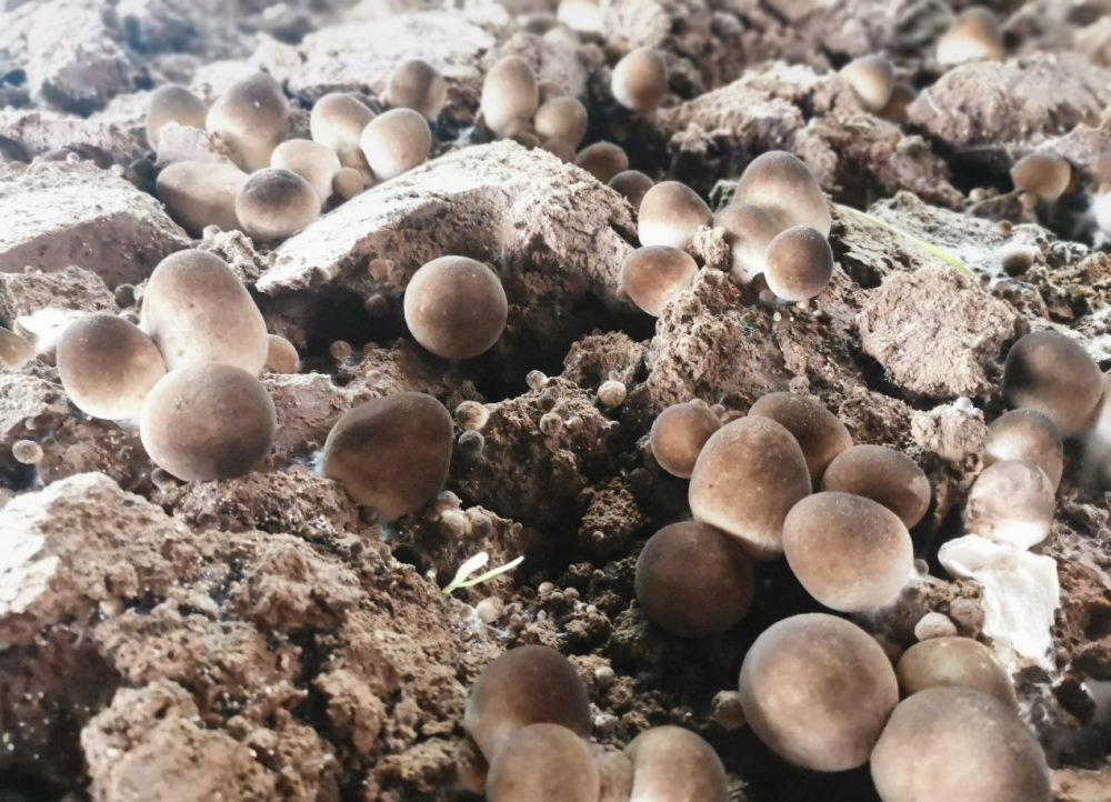 草菇不同于其他菇种,当棚内空间湿地低和通风不畅时,子实体常出现开伞、畸形等现状,此时要增加料面水分和棚内通气量。科技特派员现场给农户提出五条改善措施:一是随着子实体的生长和出菇数量的增多,棚内通气量要逐渐的增大,除了在棚顶开设通风孔外,午间还要进行通风换气。二是直接在料面加湿,温差变化大会刺激针尖期的幼菇成片死亡,水要提前加热至28℃或是经过太阳晒水温上升后再进行料面雾状喷施,最安全可靠的方式就是利用午间高温进行沟内灌水利用棚温增加棚内空间湿度,同时结合通风,不打关门水。三是采摘时要注意,对于单个生长的草菇,手捏住菌柄基部旋转轻采,避免带过多泥土;对于成丛生长的草菇,要使用小刀从子实体基部割下,遵循“采大留小”原则。四是草菇子实体生长较快,出菇潮次不明显,农户要每天早晚各采摘一次,当子实体生长到伸长期时(顶端由圆变尖)进行采收,采下后及时削根去泥,鲜品出售。五是草菇西面产量之所以大于东面是源于发菌期间西面几排进行覆膜创造了恒定的发菌温度,菌丝长势旺盛,保湿性较好,所以今后再种植时,为减少外界环境对菌丝生长的影响,播种后料面要覆膜创造良好养菌小环境。