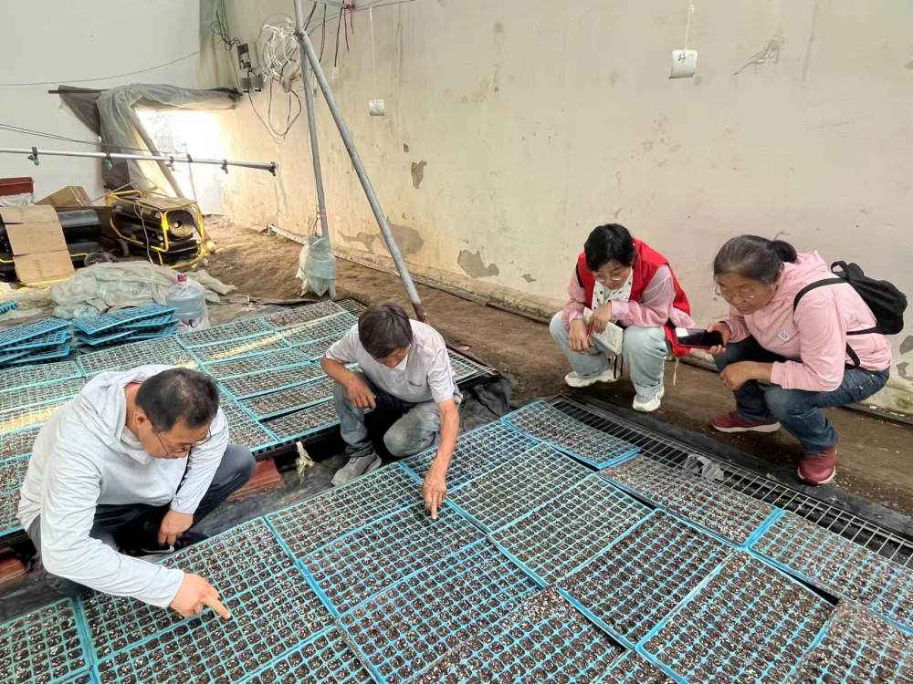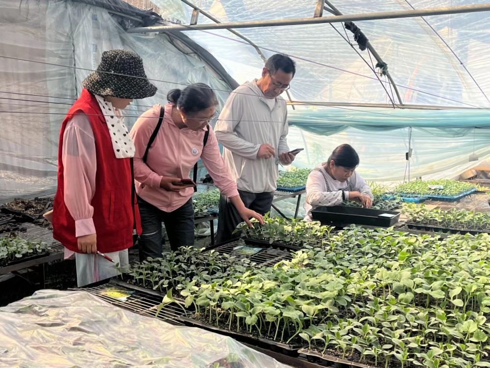 旗盛种植专业合作社目前正处于草莓育苗旺季,草莓育苗基地草害虫害较重,由于沙土原因,浇水下渗过快导致周边干旱,专家建议尽快除草,并在畦面增加两根滴灌管,沟渠增加一根滴灌管,根据温度采取畦面和沟渠交替浇水,保证草莓匍匐茎顺利生根。水果玉米现在处于5叶期,草害严重,专家建议喷施除草剂,6-10叶期要控旺,9-11叶期及时追肥,并详细讲解如何准确判断叶片数。