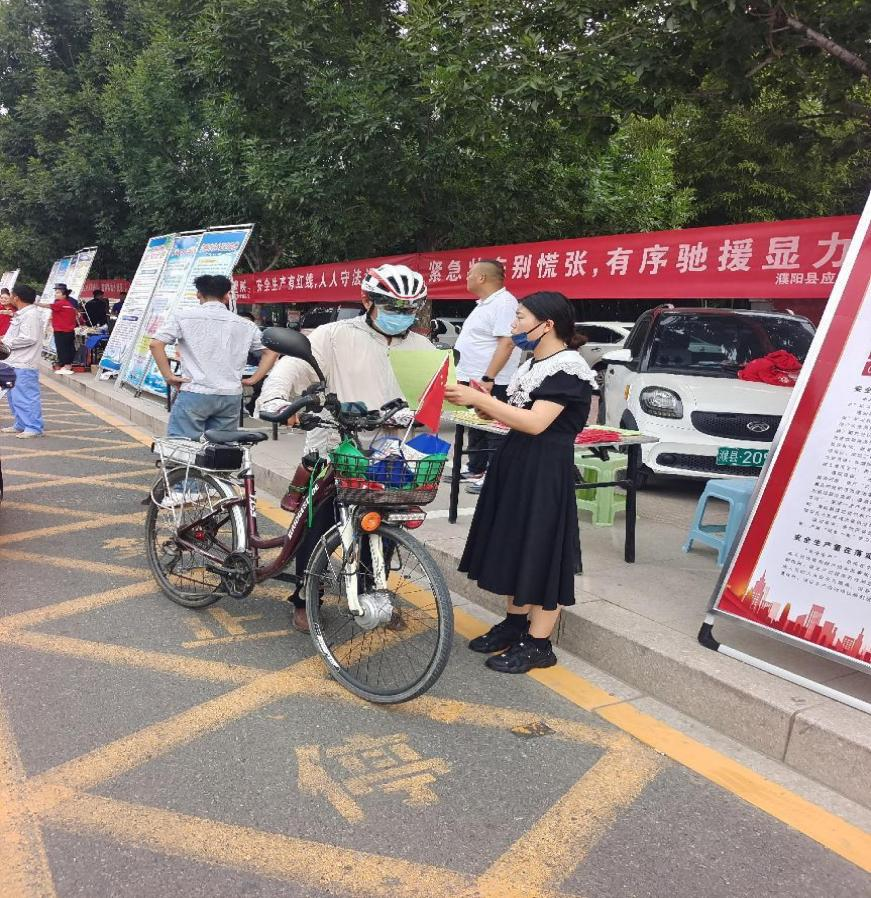 今年是第22个全国“安全生产月”,主题为“人人讲安全、个个会应急”。为深入贯彻落实习近平总书记关于安全生产重要论述,2023年6月16日,濮阳县科技局在县政府西侧开展“6·16安全宣传咨询日”活动。