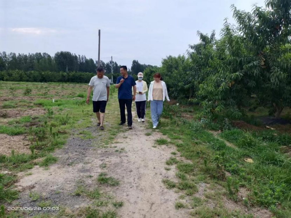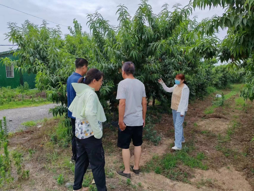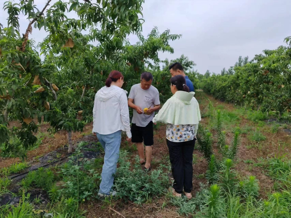2023年6月27日濮阳市科技特派员李洁茹一行4人组成服务队,深入开发区佳源果树种植有限公司开展技术指导。根据果园树体生长情况提出管理要点:1、控制旺长。喷1次300倍液的多效唑,控制树体旺长,以利于成花和枝条成熟。2、树体管理。随时疏除主干近地面60cm以下的萌蘖。对直立抱合枝拉枝,疏除过密枝、病虫枝、重叠枝。3、科学灌水。天气持续高温利用滴管设施在凌晨浇水,避开白天高温时间,防止土壤温度剧烈变化。4、及时销售。对果园西部成熟果实及时联系商户尽快销售,防止过熟和阴雨天影响效益。