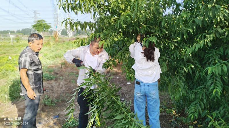 7月5日,濮阳市科学院科技特派员孙利娟,到濮阳县翠绿蔬菜种植农民合作社嫁接技术指导服务。该示范基地春季播种桃、海棠种子苗大部分达到嫁接砧木标准,前期通过现场考察与负责人协商确定繁育油蟠桃、毛蟠桃和鸡心果3品种。科技特派员孙利娟在现场对嫁接育苗技术要点进行了详细讲解,并提出技术要求:1、剪取接穗。在母株上剪取树冠上部发育充实、无病虫危害健康枝条,去除枝条下部瘪芽和上部三分之一幼嫩部分,留取芽体饱满充实枝段,尽快剪除叶片保留叶柄0.3mm左右,减少水分散失。2、嫁接方法。采用带木质芽接方法育苗,绑薄膜时裸露芽体。3、嫁接后7天左右检查芽体与砧木愈合良好后平头促萌芽。4、嫁接后注意浇水。苗圃地为沙地,4号大气降水土壤墒情较好,嫁接后如持续高温应及时浇水。