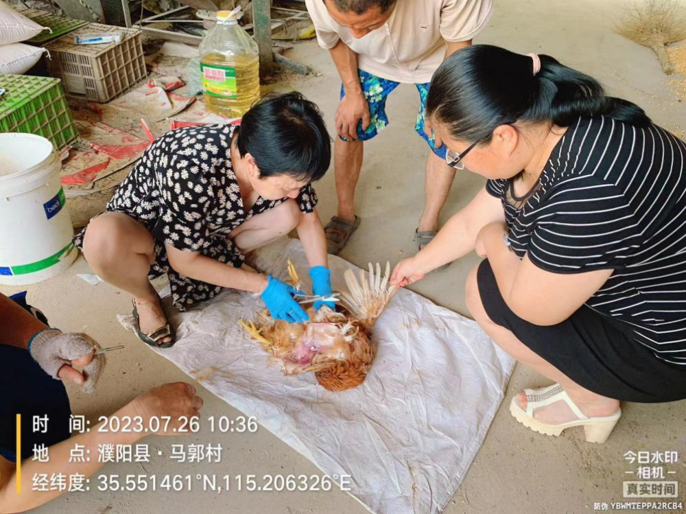 濮阳县徐镇马郭村王红彦蛋鸡养殖户打电话,说鸡场有个别蛋鸡不明原因死亡,请专家来现场瞧病。高级兽医师郭素玲、兽医师管艳平来到现场对病死鸡进行了现场解剖。经解剖,该鸡关节肿大、肝肿大、并出现气囊炎、心包炎、浆膜炎等多种病理变化,综合判定感染了大肠杆菌病并继发感染葡萄球菌死亡。