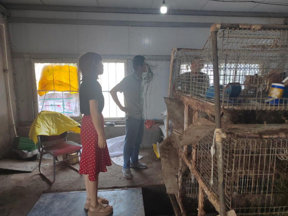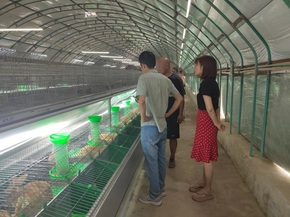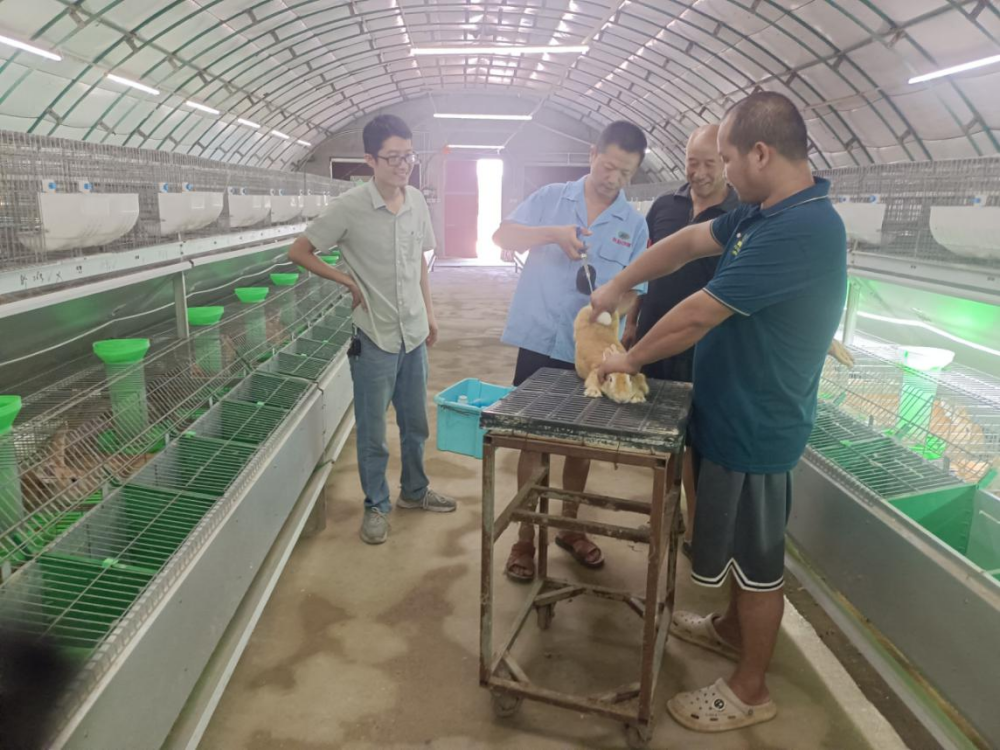 随后,特派员现场详细询问近段实际疾病控制情况,并现场查看兔子繁殖情况、健康情况和兔舍环境。在了解到夏季种母兔由于采食量降低因此影响泌乳,导致仔兔死亡率升高后,特派员提醒到,夏季养殖一定要注意及时补充一些青绿饲料补充营养,另外还可以增加一些优质动物蛋白等,保障兔营养供应充足且丰富。