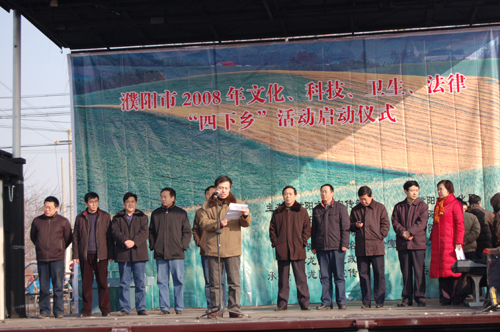 上午,我市2008年文化、科技、卫生、法律“四下乡”活动启动仪式在华龙区岳村乡翟庄村举行。市科技局参加了启动仪式。