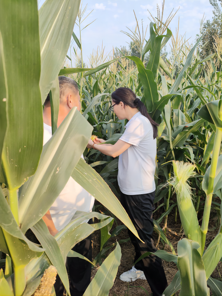 9月3日,科技特派员冯素伟博士到受援单位濮阳县胡状镇美芳种植家庭农场进行现场技术指导,深入田间仔细查看玉米中后期生长情况。今年玉米生育期雨水较多,气温较高,形成了有利于螟虫、棉铃虫、草地贪夜蛾等钻蛀性害虫爆发的高温高湿条件,若不及时防治,不但会影响今年玉米的总体产量,而且造成籽粒缺失、穗部发霉而影响品质。