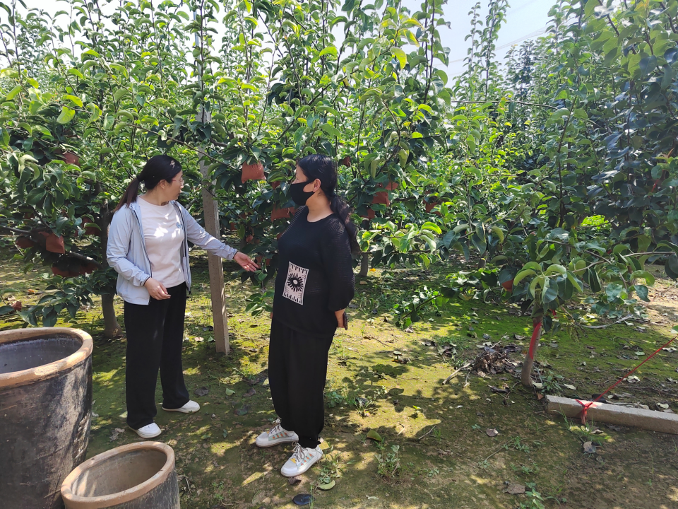 南乐县科技特派员张丽景到桃园指导果树管理