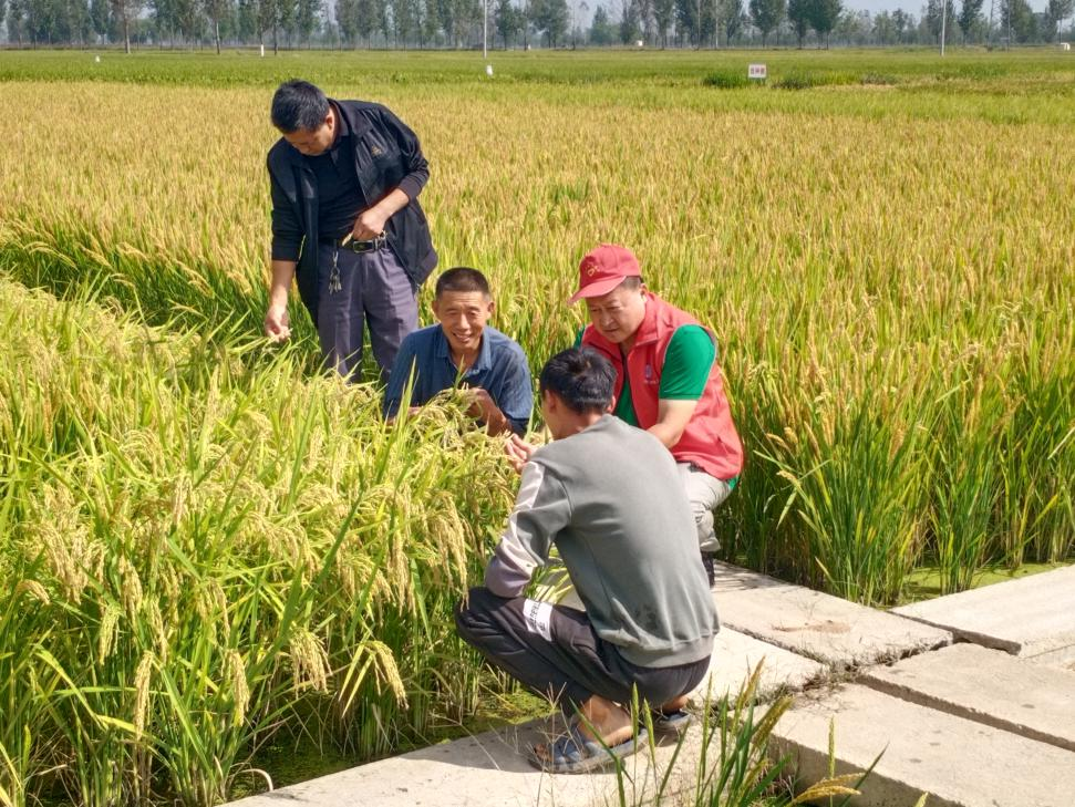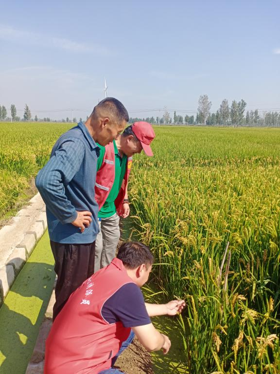 在范县辛庄镇亚允专业合作社种植的稻田,合作社负责人介绍了水稻生产情况,今年合作社种植的水稻群体适中,长势较好,产量预计要高于去年。目前水稻已陆续进入成熟期,正是产量形成的重要时期,科技特派员指出:水稻要想丰产,一定要注意水分管理,灌浆期到乳熟期尽量用“干干湿湿、以湿为主”的方法;蜡熟期尽量用“干干湿湿、以干为主”的方法;后期不要断水过早,以免影响谷粒饱满度,影响水稻产量,收获前10~15天停水晒田,可根据土壤墒情、天气、籽粒成熟度等情况灵活掌握。当黄熟谷粒达95%时,要及时收获。