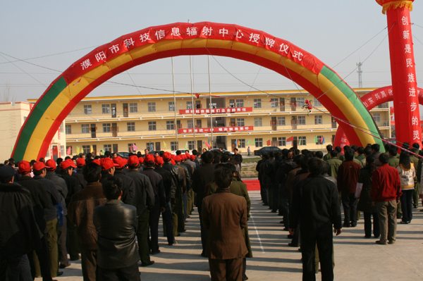 9时10分,在欢乐的音乐声中,吴社法书记宣布仪式开始,解局长宣读了认定16个科技信息辐射中心的文件,然后16个中心分二批上台领牌,接着家家宜米业有限公司韩经理代表16个中心表示了搞好科技信息服务、促进当地农村经济发展的决心。市科技局李局长肯定了近几年科技信息服务工作的同时,要求各中心认真完成2008年度科技辐射中心工作任务。