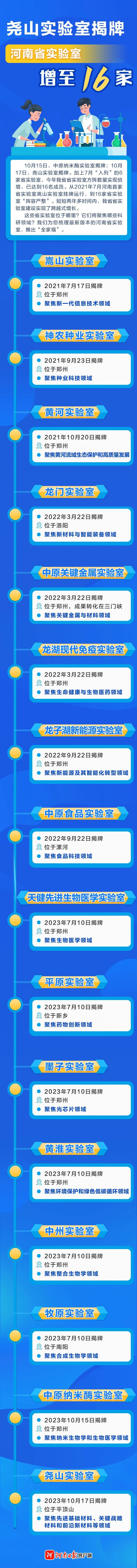 2021年7月起,嵩山实验室、神农种业实验室、黄河实验室3家省实验室在百日之内相继揭牌运营;2022年,龙门实验室等5家省实验室先后揭牌,推动形成了以省实验室为核心、优质高端创新资源协同创新的“核心+基地+网络”的创新格局;2023年7月,天健先进生物医学实验室等6家省实验室集中揭牌,使省实验室体系构建迈上新层次;金秋十月,中原纳米酶实验室和尧山实验室的揭牌,进一步壮大了省实验室体系阵容。