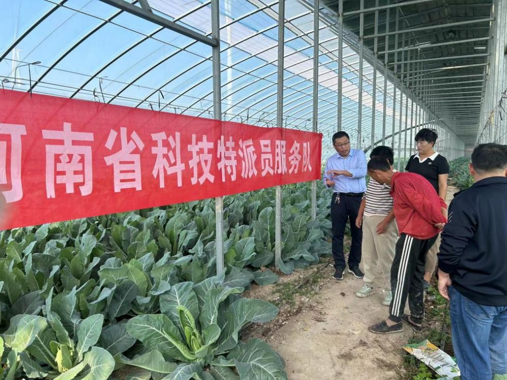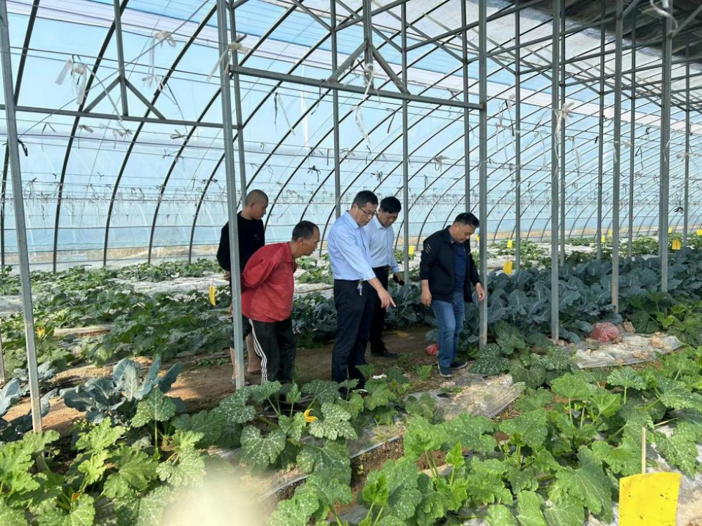 在城关镇子伦家庭农场,孙刚强首先实地查看了大棚菜花生长情况,通过上次技术服务,前期出现的西葫芦病毒病已有效控制,菜花死棵问题得到了根本防治,白粉虱数量也大大降低,菜花长势良好,基本未发现病虫害,目前正处于结球期,即将收获。