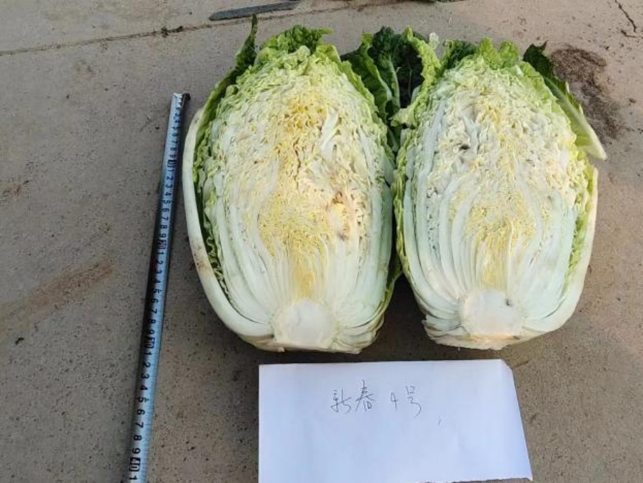 通过实测产量和田间观察,2个新品种抗病性强,产量高、品质优、商品性好,两个品种都没有发生各种病害和干烧心现象,深受市场欢迎。服务团建议合作社进一步扩大种植面积。豫新4号大白菜由于开展度较小,建议适当密植,增加单位面积株数,进一步增加产量。