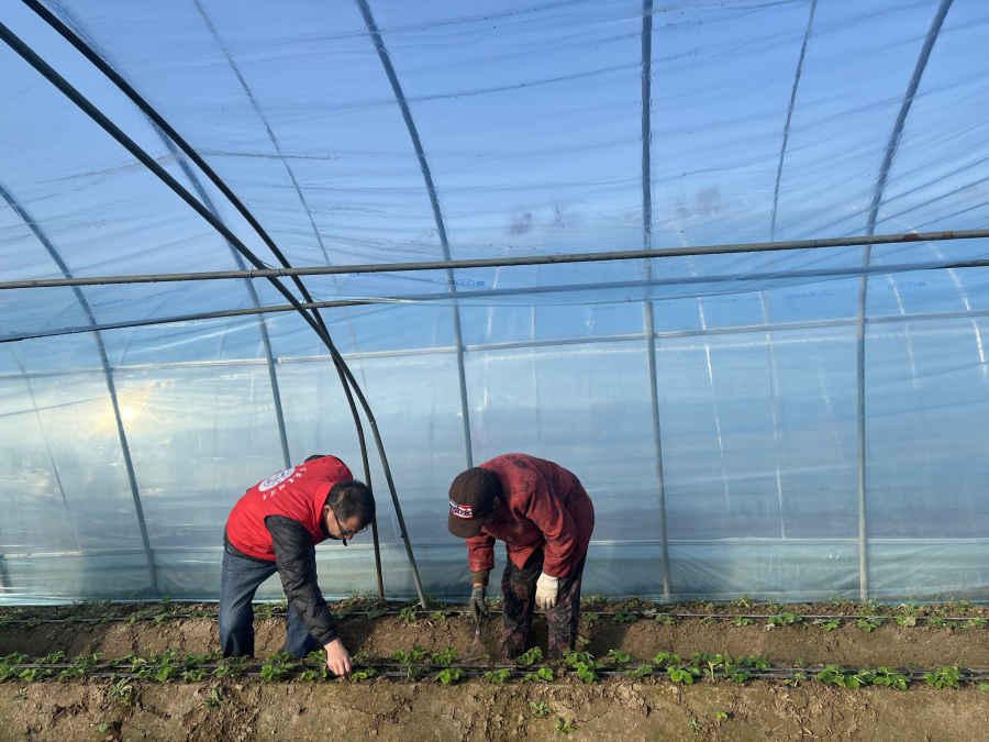 旗盛农民种植专业合作社的大棚草莓定植较晚,服务团建议抓紧除草、及时盖地膜,适时关注天气预报,在下一场强寒流到来前覆盖二膜,备好加温设备,保证冬季生长和市场供应,获得更高生产效益。