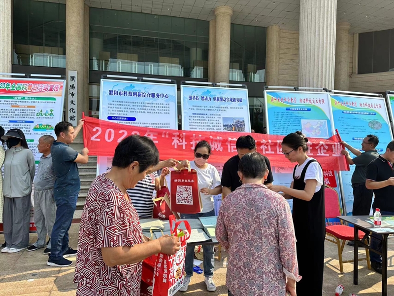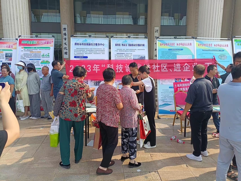 9月18日上午,2023年濮阳市“全国科普日”活动启动仪式在濮阳文化艺术中心举行。为努力营造“崇尚科学、热爱科学”与扎实开展科技诚信活动的浓厚氛围。市科技局与科技服务中心科技人员在龙都广场开展“2023年科技诚信进社区、进企业、下乡宣传活动”主题活动。活动中,共发放《法律法规知识问答》、《法律知识手册》、《科研诚信建设》、《濮阳市国家级科技企业孵化器宣传彩页》、《行政服务常识》、《消防安全知识》等各种明白纸300余份,现场接受咨询并解决难题百余人次。在“全国科普日”活动期间,濮阳市市科技局与科技服务中心将立足群众所需,服务创新发展,助力科技自立自强,开展内容丰富、形式多样的宣传活动,为提高全民科学素质,建设美丽濮阳、诚信濮阳贡献青春力量。