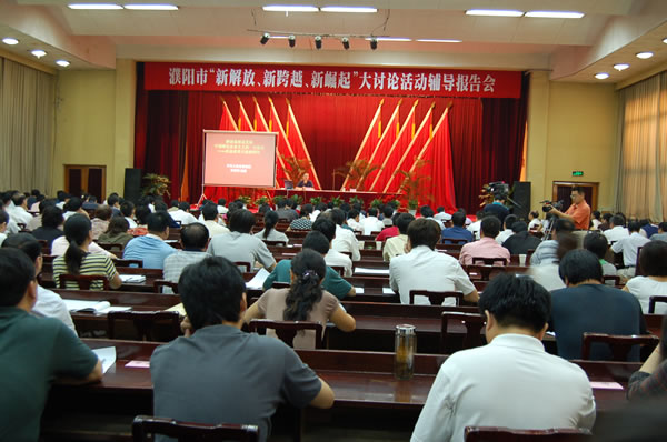 8月14日上午,我市通过市科技局请到了上海市委党校教授冷鹤鸣,为我市当前正在开展的“新解放、新跨越、新崛起”大讨论活动,作了名为“解放思想是发展中国特色社会主义的一大‘法宝’”辅导报告会。市委宣传部副部长张秋郎主持了报告会并作了重要讲话。张秋郎副部长在讲话中要求,各单位要围绕当前的大讨论活动和冷教授的报告,联系思想和工作实际,认真开展讨论,切实在思想认识上见成效,在破解难题上见成效,在发展实践上见成效。他要求各单位在完成第一阶段的基础上,抓好查摆问题阶段的活动,深入基层,调查研究,广泛征求意见,开好民主生活会,把当前的“三新”大讨论的过程变为谋划对策、破解难题、推动工作。