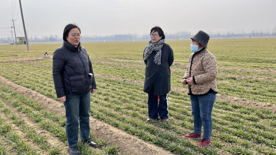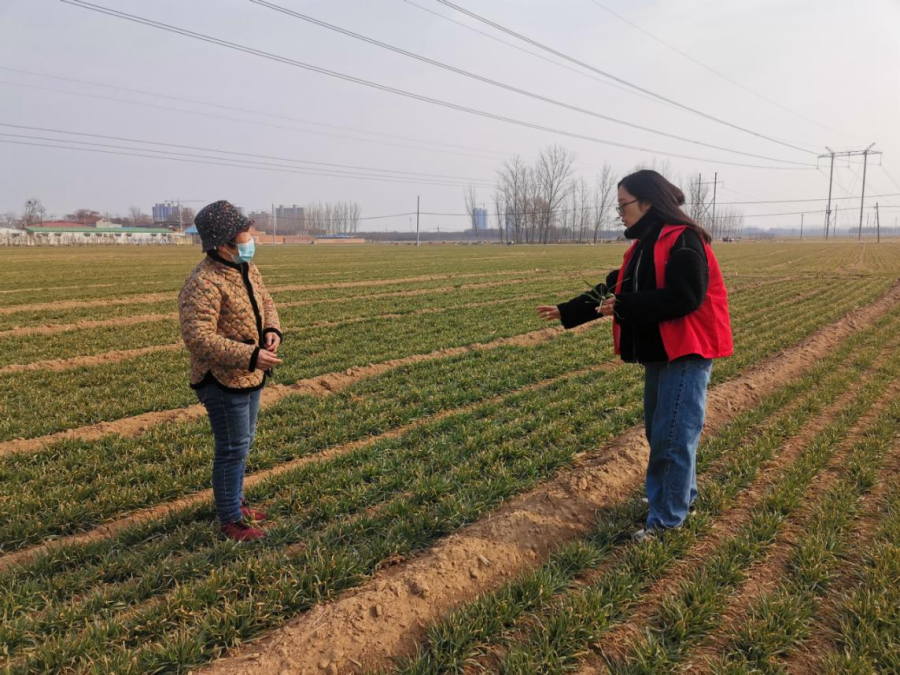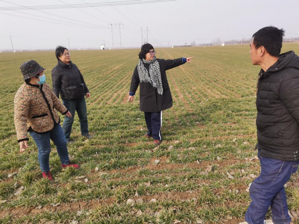 雨水已过,惊蛰将至。日照时数和强度不断增加,气温回升较快,降水量逐渐增多,小麦生长速度开始加快,逐渐进入麦田管理最繁忙的季节,农业生产上正值小麦春季管理的关键时期。2024年2月29日,科技特派员、濮阳市农林科学院副研究员刘晓帆、助理研究员马盼盼、王丹一行深入清丰县先农种植农民专业合作社、濮阳县五星乡诚智种植家庭农场和濮阳县大勇种植有限公司,实地察看了部分地块墒情和麦苗生长情况,开展小麦春季追肥、灌水和除草等技术指导服务。指导种植户通过早管早促、追肥浇水、科学镇压等手段做好小麦春季管理,促进小麦早返青,多分蘖,争取在拔节前形成更多的分蘖,为扩大群体打好基础。