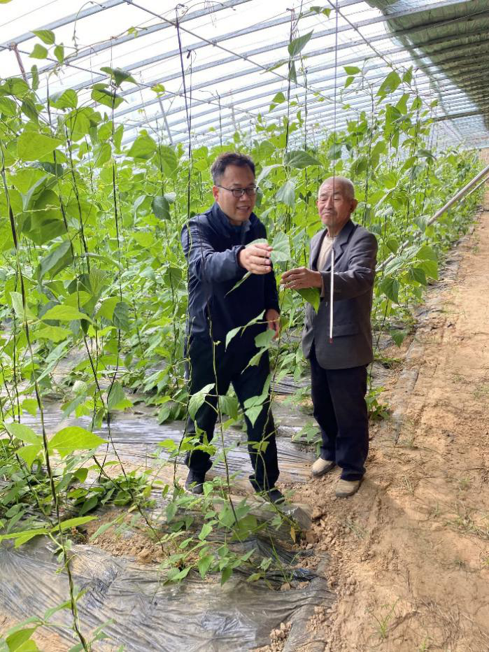今年春季大棚主要种植了豇豆(长豆角),目前正在豆角开花坐荚期,河南省科技特派员程彦伟及团队对豆角的生长管理技术进行了指导。