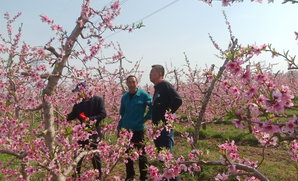 吉洪坤以河南省地方标准《桃树流胶病防治技术规程》和《桃树穿孔病综合防治技术规程》等相关技术资料为规范,针对目前该合作社桃树存在的病虫害情况,结合桃树生长现状,开展桃树病虫害防治工作指导:一加强土肥水管理;二及时抹芽,控制树势;三结合桃树生长物候期,研究制定下一步专业技术培训班培训计划。