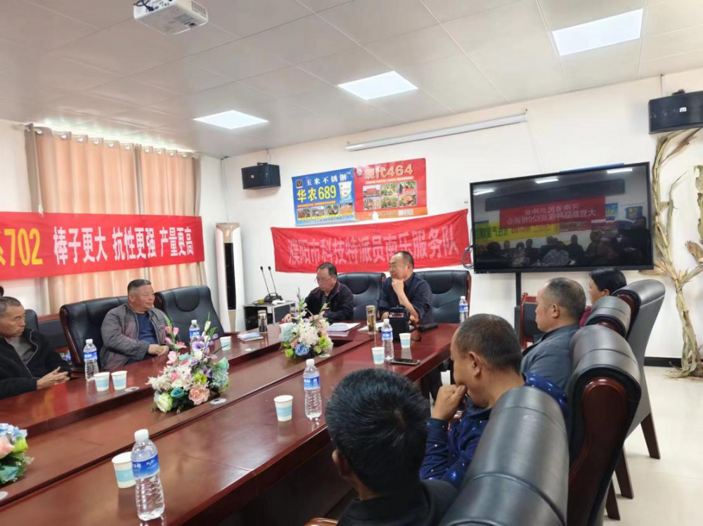 4月8日,濮阳市科技特派员王俊兴在河南省民兴种业会议室对来自福堪镇、韩张镇、谷金楼乡、西邵乡、梁村乡五个乡镇四十余百亩以上种地大户进行小麦孕穗期管理关键性问题和夏玉米一季超吨粮关键性环节进行技术培训。
