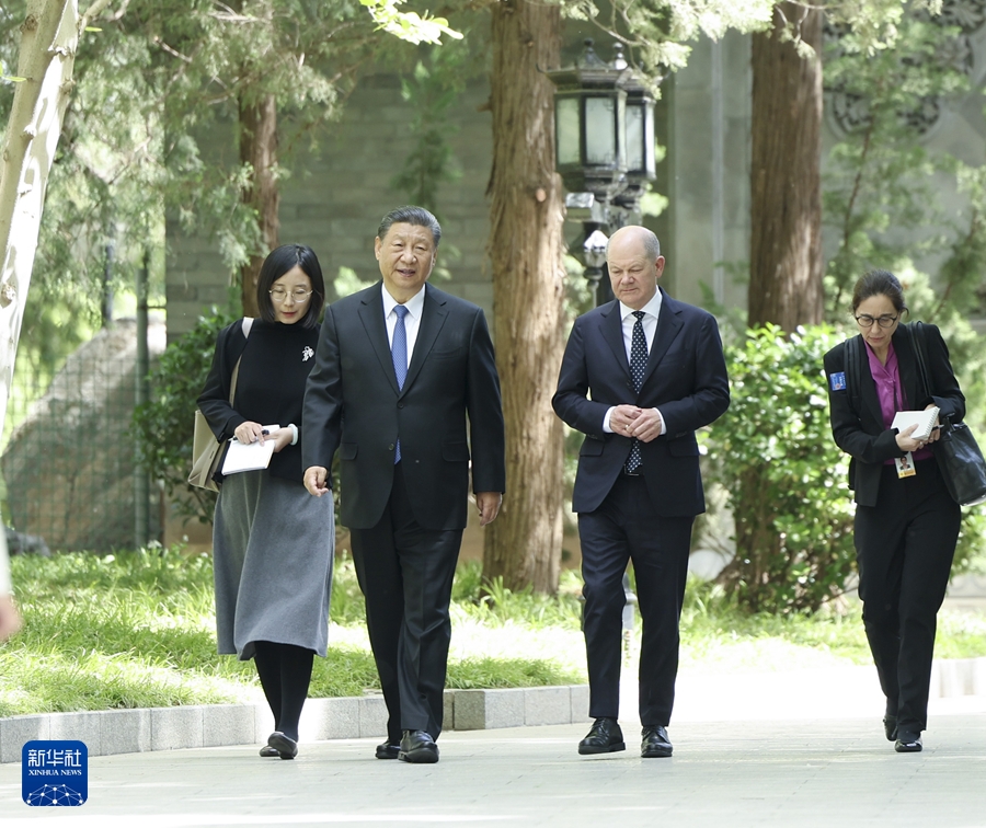 会见后,习近平同朔尔茨一起散步并共进午餐,就广泛议题进一步深入交流。