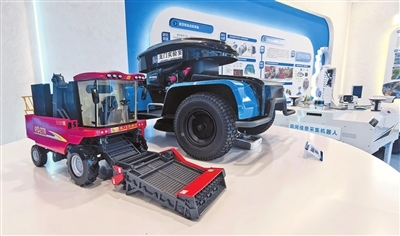龙门实验室研发的油莎豆高效联合收获机和果园智能除草机器人模型。本报记者 尹江勇 摄