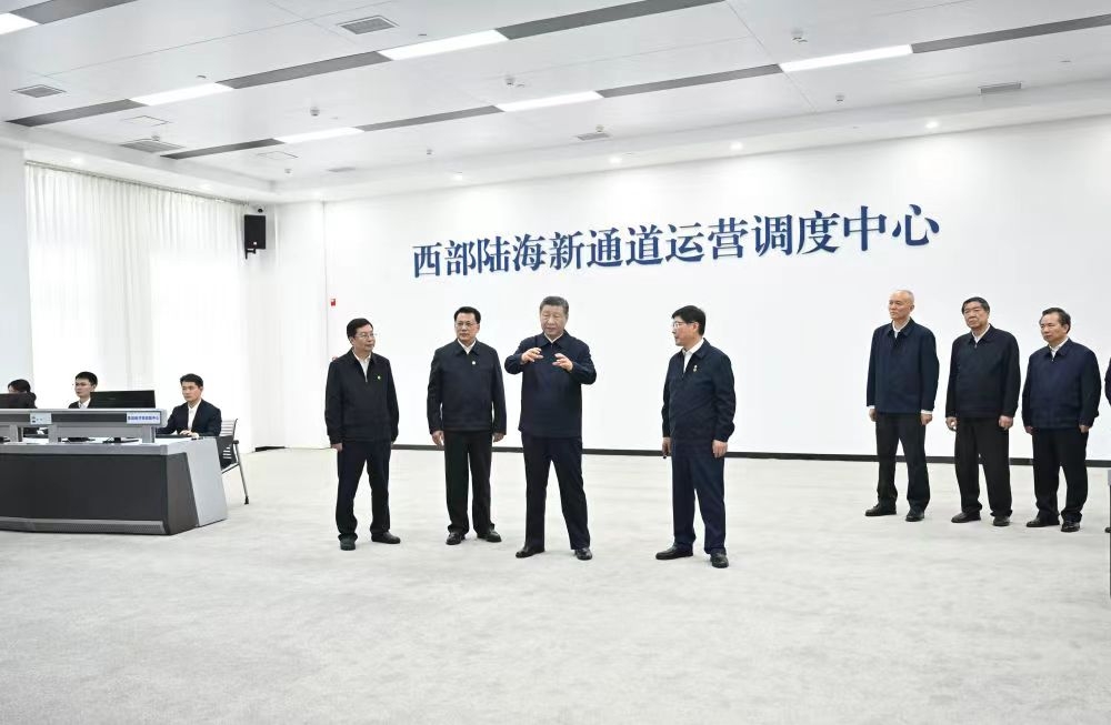 22日下午,习近平首先考察了重庆国际物流枢纽园区。他来到西部陆海新通道重庆无水港运营调度中心,听取新通道建设情况汇报。习近平强调,物流是实体经济的筋络。建设西部陆海新通道,对于推动形成陆海内外联动、东西双向互济的对外开放格局具有重要意义。各有关方面要齐心协力,把这一标志性项目建设好、运营好,带动西部和内陆地区高水平对外开放。物流园区要积极运用先进技术,不断创新联运模式,提高科学管理水平,在建设现代物流体系中发挥更大作用。