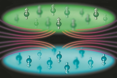 研究人员使用了两束具有不同频率(颜色)和偏振角度的激光。当两束光穿过超冷原子云时,原子会沿着两束激光的偏振方向调整自旋方向,使光束产生两组相同原子,但是自旋相反。