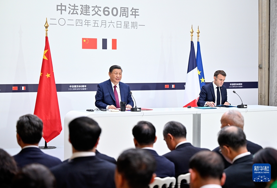 习近平指出,很高兴应马克龙总统邀请,在中法建交60周年之际,再次对法国进行国事访问。我同马克龙总统举行了富有成果的会谈。我们一致认为,中法关系具有珍贵历史、独特价值和重要使命,双方要传好历史的接力棒,弘扬中法建交精神并为其赋予新的时代内涵,开启中法关系下一个60年的新征程。