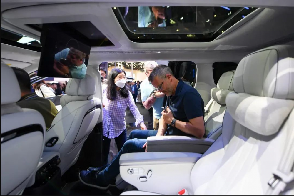 人们在世界设计之都大会上参观极越汽车(2023年9月30日摄)。新华社记者 王翔 摄