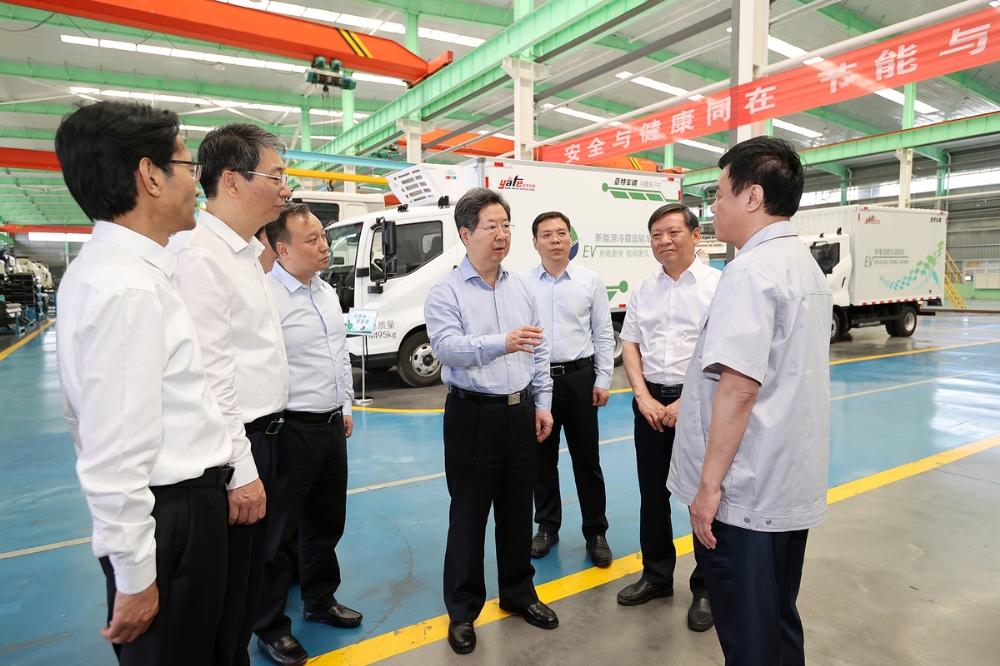 5月14日,省委书记楼阳生到驻马店市新蔡县河南亚特车辆公司,调研汽车产业发展情况。记者 董亮 蔡迅翔 摄