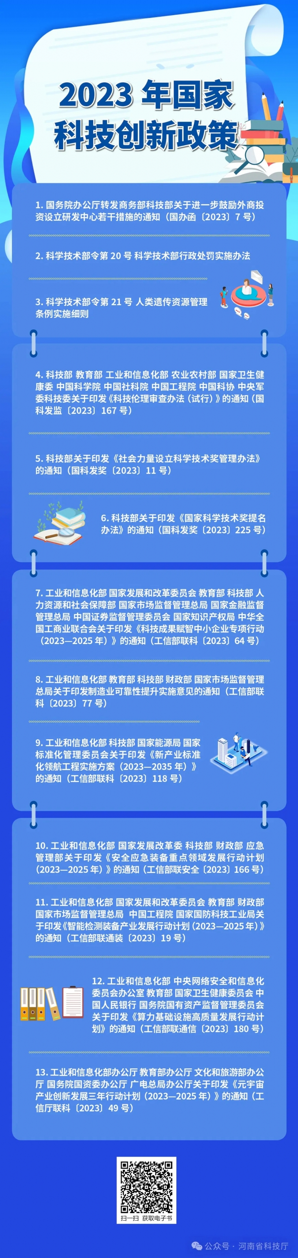 扫描下方的二维码即可查阅《2023年国家、河南省科技创新政策汇编》电子完整版内容。