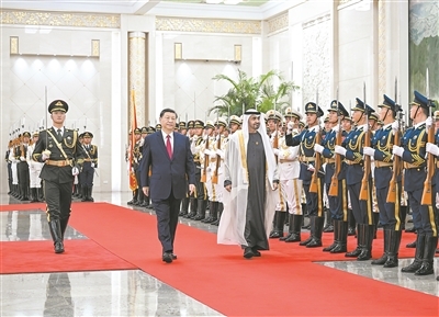 530日下午,国家主席习近平在北京人民大会堂同来华国事访问并出席中国—阿拉伯国家合作论坛第十届部长级会议开幕式的阿联酋总统穆罕默德举行会谈。
