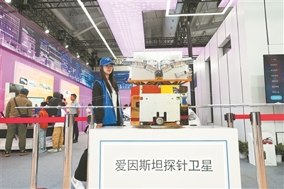 图⑤ 观众观看爱因斯坦探针卫星模型。