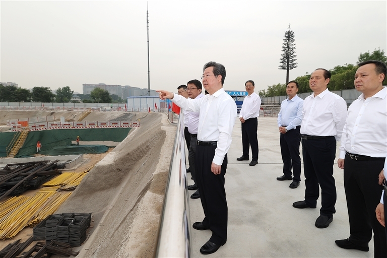 6月4日,省委书记楼阳生到国家超算互联网核心节点工程项目施工现场,调研工程建设进度、算力基础软件研发等情况。 记者 董亮 蔡迅翔 摄