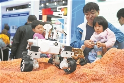 ③ 遥控太空车模型吸引观众驻足。