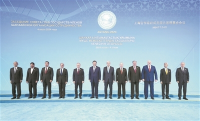 当地时间7月4日上午,国家主席习近平在阿斯塔纳独立宫出席上海合作组织成员国元首理事会第二十四次会议。这是习近平同上海合作组织成员国领导人集体合影。新华社记者 鞠鹏摄