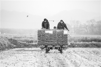 农机手操作插秧机插秧。 新华社记者 陈思汗摄