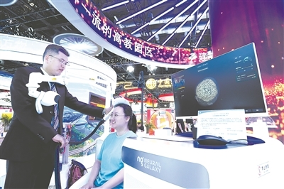 七月十三日至十六日,第二十六届中国北京国际科技产业博览会在国家会议中心举行。图为北京优脑银河科技有限公司展示的自主研发的脑环路起搏器。本报记者