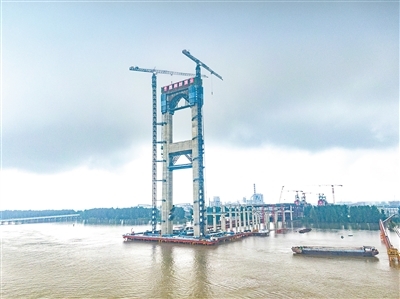图为燕矶长江大桥水中主塔施工现场。张顺摄