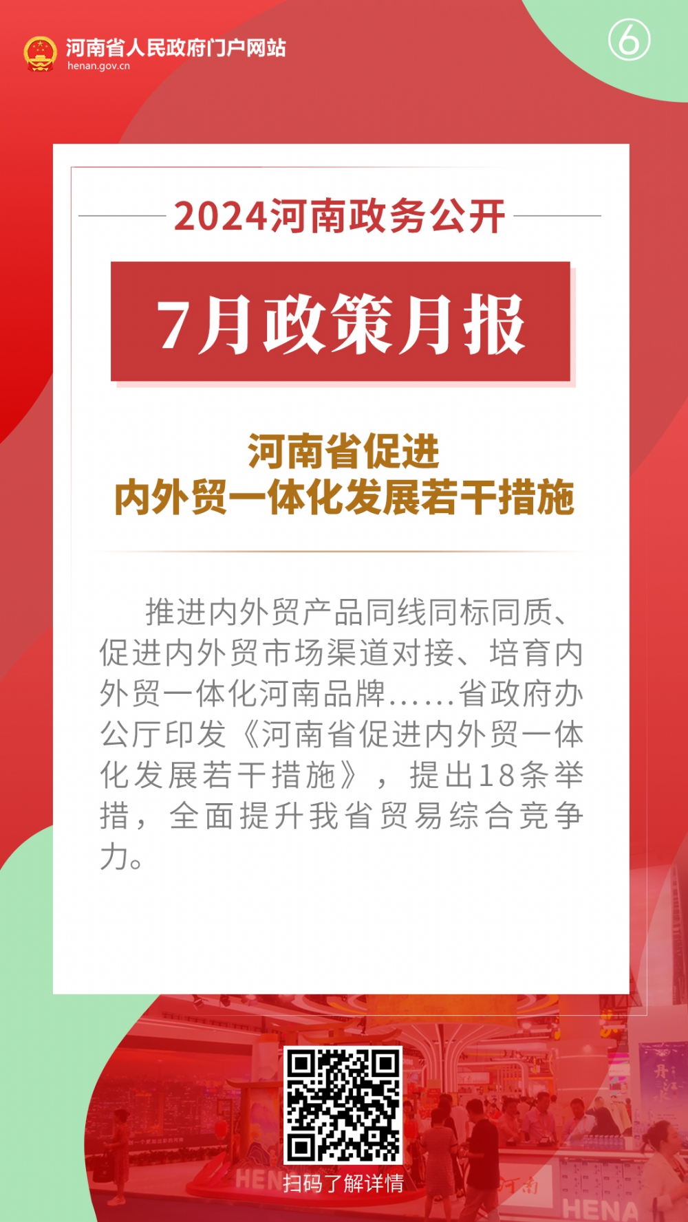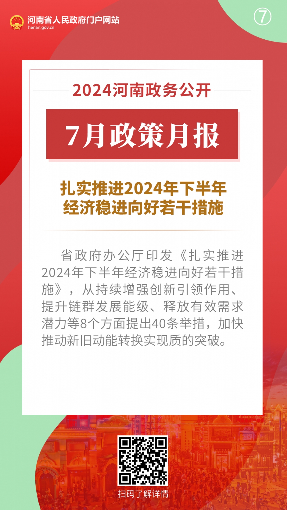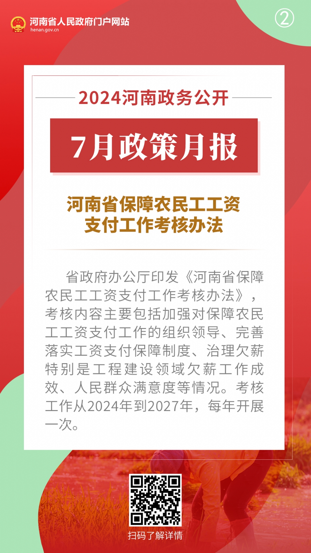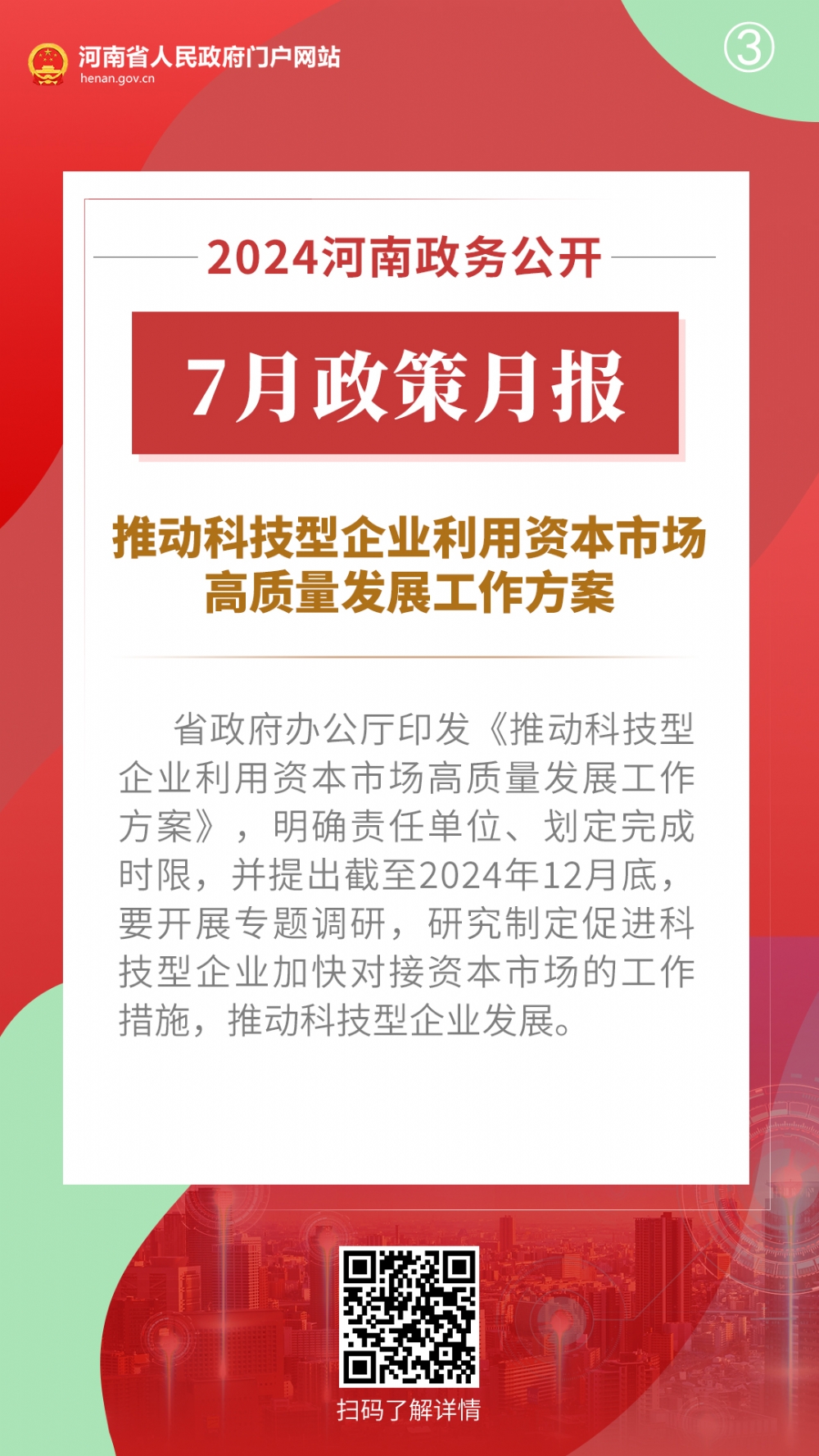 2024年7月,河南省人民政府出台多项重要政策,包括推动科技金融增量扩面降价提质工作方案、河南省保障农民工工资支付工作考核办法、推动科技型企业利用资本市场高质量发展工作方案、关于全面加强防雷安全工作的通知、河南省废弃物循环利用体系建设行动方案、河南省促进内外贸一体化发展若干措施、扎实推进2024年下半年经济稳进向好若干措施、关于进一步优化政务服务提升行政效能推动“高效办成一件事”的实施意见。通过河南政务公开7月政策月报,一起来看详情——