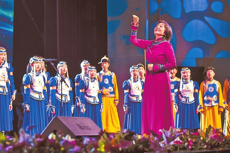 8月10日晚,2024年中国(郑州)黄河文化月启动仪式暨2024中国音乐小金钟——首届全国青少年合唱展演开幕式音乐会在郑州大剧院举行。图为童声合唱《美丽的草原我的家》。徐宗福 摄
