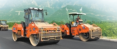 8月14日,在沿太行高速公路焦作至济源段沁阳市紫陵镇境内,中交一公局筑路工人在进行沥青路面摊铺施工。杨帆 摄
