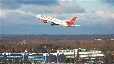 图为英国维珍航空使用可持续航空燃料完成首次跨洋航班飞行。