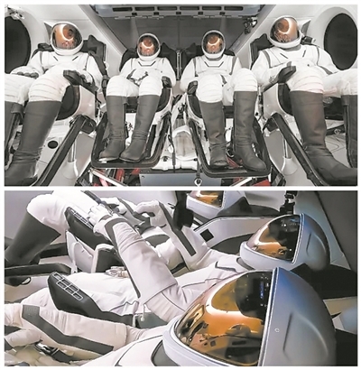 由于“龙”飞船上没有气闸舱,因此,4名机组人员都将暴露于太空真空环境中。