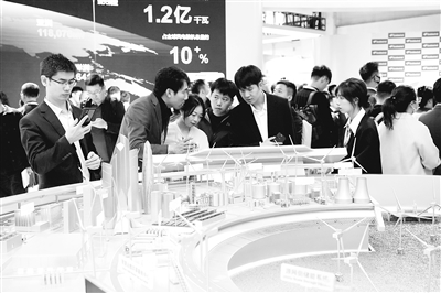 10月16日至18日,2024北京国际风能大会暨展览会在京举行。本届大会以“构筑发展新格局 践行时代新使命”为主题,推出氢能、海上工程及装备、新型储能等主题展区。图为观众观看清洁能源开发综合解决方案模型。本报记者 洪星摄